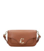 Borsa a tracolla Coccinelle C-Me medium modello con patta e logo C-Me in metallo dorato posto sul davanti, silhouette con bordi curvi.