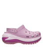 Sabot Crocs Classic Mega Crush Clog. Classica tomaia a guscio forata con logo in rilievo sul cinturino retrocaviglia, caratterizzato dal platform sagomato ad onde con finish lucido e logo sul retro.