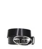 Cinta Diesel Oval D Logo realizzata in morbida pelle italiana con fibbia con logo oval D in metallo lucido nickel-free.