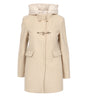 Cappotto Fay Toggle Coat Db Front realizzato in panno misto lana, con pettorina e cappuccio imbottiti in ovatta tecnica,con tasche con patta a doppio ingresso, chiusura con zip coperta, automatici nascosti ed iconico alamaro Fay. Completa il capo un'etichetta interna con il nome del capo.
