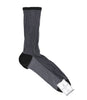 Calzini Gallo Corto Twin Rib realizzate in Italia in fibra sintetica. L'iconica trama a coste, fantasia twin rib con effetto lurex nei toni del grigio, rende queste calze un vero tocco di stile, perfetto per rendere unico ogni look. Punta e tallone rinforzato a contrasto.