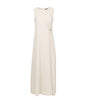 Abito Herno in tessuto fluido con leggera armatura diagonale. Silhouette dritta, sfoderata per una caduta lineare e spessore contenuto. Girocollo con chiusura a bottone sul retro e apertura a goccia posteriore. Dettaglio in metallo applicato.