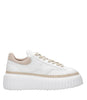 Sneakers Hogan H-Stripes H569 tomaia in nappa, H sul laterale che si estende su tutto il lato, chiusura con lacci, topponcino retro caviglia in pelle scamosciata, soletta in memory foam, platform scanalato.