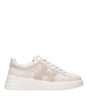 SneakersHogan Rebel H562 silhouette dall linee morbide realizzata in pelle scamosciata, iconica H laterale ondulata in pelle. La soletta in memory foam, chiusura con lacci.