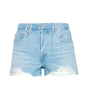 Shorts Levis 501 Original in denim medio, modello corto, super vintage con il caratteristico orlo “masticato” proprio e inconfondibile nota di questo capo.