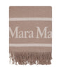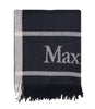 Mantella Max Mara modello Hilde in lana con frange sul bordo e logo Max Mara jacquard lungo la parte inferiore del bordo.