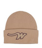 Cappello Max Mara Weekend Alben realizzato in pura lana con lavorazione a costa inglese, bordo risvoltato e maxi patch "W" applicato sul davanti.
