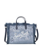 Borsa a Mano MC2 Saint Barth Colette in tessuto di lana con motivo pied de poule, frange sui bordi, manici fissi in ecopelle, tracolla in ecopelle regolabile e rimovibile. Logo maxi ricamato sul davanti e mini sul retro, chiusura con zip.