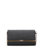 Clutch Michael Michael Kors Mona in pelle saffiano, con Logo frontale in metallo dorato, modello da portare a mano o con tracolla in catena dorata rimovibile. Chiusura con patta e magnete profilata in metallo dotrato. Tascha interna a fessuta.