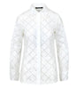 Camicia Pennyblack Toast silhouette dal taglio maschile reinterpretata in chiave femminile, realizzata in popeline di cotone con disegno a rombi di micro strass, taglio slim con pinces.