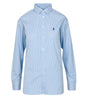Camicia Polo Ralph Lauren in cotone con motivo a righe. Collo ampio e cannoncino con bottoni in madreperla, maniche lunghe con polsini, spalle basse, carré con pieghe e fondo più lungo dietro; pony ricamato sul petto. Silhouette dritta, relaxed fit, lunghezza ai fianchi,