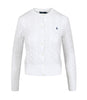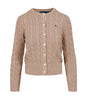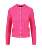 Cardigan Polo Ralph Lauren realizzato in puro cotone nella iconica lavorazione a trecce, esclusivo pony ricamato sul torace, silhouette corta ed aderente con girocollo e chiusura frontale con bottoni a vista.