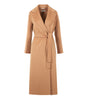 Cappotto S Max Mara Poldo modello lungo in pregiato doppio drap di pura lana cucito a mano, caratterizzato da una silhouette a vestaglia con collo a rever ampio, maniche a giro e tasche inserite nei fianchi. Modello sfoderato, rifinito con piccoli spacchi al fondo manica e spacco centrale sul retro. La chiusura con cintura abbinata permette di evidenziare la silhouette.
