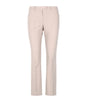 Pantaloni in doppio tessuto di cotone e viscosa stretch, con piega stirata sulla gamba e linea leggermente svasata al fondo. Chiusura con lampo coperta e piccolo gancio.