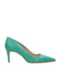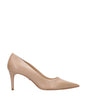Decolleté Schutz in nappa, design classico ed essenziale con linee pulite, tacco a stiletto, punta a punta, suola con logo in metallo dorato.
