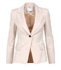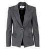 Giacca Simona Corsellini in misto viscosa comfort, scollo a V con revers stretto, abbottonatura mono petto ad un bottone, tasche a patta applicate e maniche lunghe con spacchi finali sui polsi, modello avvitato