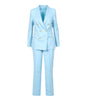 Completo due pezzi Tagliatore in misto lino ,modello doppiopetto con bottoni dorati, revers calssici e tasca a filetto sul petto.