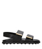 Sandalo Tod's realizzato in pelle di vitello. Modello basso con due fasce regolabili con velcro decorate con terminali in metallo dorato personalizzato, suola in gomma leggera e gommini. Una linea nata nell'idea di chi vuole ed ama distinguersi indossando un modello easy chic.