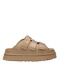 Ciabatta UGG W Goldenglow Slide linea audace dal carattere estremo. Caratteristica esclusiva la leggerezza dei materiali. Plateau in EVA da canna da zucchero e la suola interna sagomata.