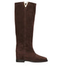 Stivale Via Roma 15 con zeppa interna in pelle samosciata color moro e dettagli in metallo.