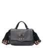 Postina Zanellato Daily Giorno Baby in pelle di vitello martellata, con doppia tracolla in pelle ed in tessuto jacquard regolabile rimovibile. Chiusura con patta, spazi interni, decorata con borchie.