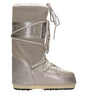 Stivale Moon Boot MB Icon Glance realizzato in materiale tecnico, con suola antiscivolo, imbottitura isolante, con lacci tubolari a incrocio, occhielli in metallo color argento, coulisse regolabile sul bordo.
