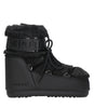 Tronchetto Moon Boot MB Icon Low Faux Fur realizzato in materiale tecnico, con suola antiscivolo, imbottitura isolante, con lacci tubolari a incrocio, occhielli in metallo color argento, coulisse regolabile sul bordo.