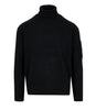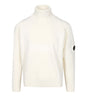 Lupetto C.P. Company realizzato in Lambswool GRS, tessuto con certificazione Global Recycled Standard nel rispetto dell'ambiente e sociale. Modello dal design classico per il brand, collo alto, rifinirure con bordi a costine. Iconico badge lente logo C.P. Company sul taschino applicato sulla manica sinistra
