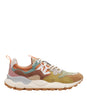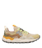 Sneakers Flower Mountain Yamano 3, modello basso, dalla tomaia in tessuto tecnico caratterizzata da inserti in suede e dall'iconico occhiello dalla forma sagomata. Le linee evocano le calzature trekking, con suola in gomma ultra leggera e battistrada dentellato. La soletta interna in sughero naturale antibatterico assicura benessere al piede e comfort all day long.