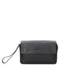 Borsello Orciani Micron in pelle martellata, tasca aperta sotto la patta, sei scomparti porta carta di credito, chiusura con patta, bottoni magnetici e zip, cinturino al polso.