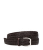 Cinta Orciani Wide realizzata in pelle con motivo intrecciato, con fibbia in metallo argentato, accessori da poter abbinare a qualsiasi look.