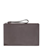 Pochette Orciani Micron in morbida pelle martellata, con manico al polso, chiusura superiore con zip, interno con otto scomparti per carte di credito, protezione RFID anti-frode.