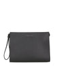 Pochette Orciani Micron in morbida pelle martellata, con manico al polso, chiusura superiore con zip, interno con otto scomparti per carte di credito, protezione RFID anti-frode.