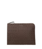 Pochette slim Orciani Chevrette Woven in pelle martellata con lavorazione ad intreccio, chiusura semicircolare con zip in metallo e tirante in pelle.