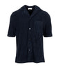 Camicia Paolo Pecora realizzata in misto cotone, caratterizzata dal tessuto spugnato a punto nido d'ape all over, modello a camicia con colletto classico e chiusura con bottoni, maniche corte e fondo dritto.