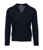 Cardigan Paolo Pecora in lana rasata, scollo a V, chiusura con bottoni in tono, con profini a costine, fondo dritto, vestibilità regolare.