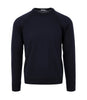 Maglia Paolo Pecora in lana blu, girocollo, maniche lunghe, orlo e polsini a coste.