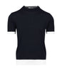 T-Shirt Paolo Pecora in cotone a girocollo e maniche corte, vestibilità regolare. Il modello è alto 1.75m e indossa una taglia M.